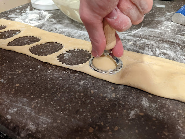 Using a ravioli cutter or a knife, cut the individual ravioli into squares or circles. Make sure to press the edges firmly to ensure the ravioli stays sealed during cooking.